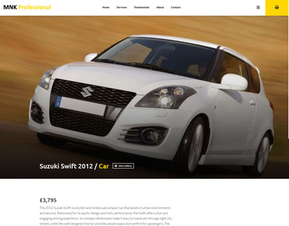 Their collection includes models like Suzuki Swift, Toyota Yaris, and Honda Civic. The website provides services such as vehicle inspection, trade-in evaluation, financing assistance, title transfer, test drives, and vehicle appraisal. With an easy-to-navigate design, users can explore the “About Us,” read customer testimonials, and contact MNK Professional for more information.