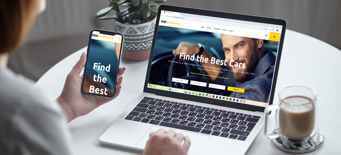 MNK Professional is a car dealership offering a diverse selection of vehicles, including models such as the Suzuki Swift (2009 & 2012), Toyota Yaris (2012), Toyota Corolla (2010), Honda Civic (2005), and Honda Jazz (2005). Their website features a clean and organized layout that allows users to explore available vehicles and request services such as vehicle inspections, trade-in evaluations, financing assistance, title transfers, and test drives. The “About Us” section provides insights into the company’s values, while the “Testimonials” page builds trust by showcasing customer feedback. Additionally, the contact page ensures that users can easily reach out for further inquiries. The website’s user-friendly interface and seamless navigation make it easy for potential buyers to find their next vehicle.